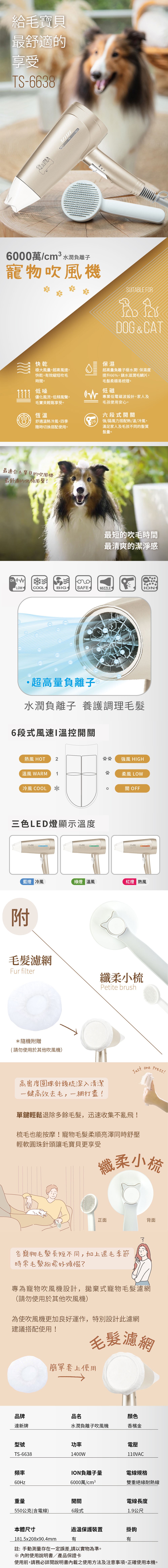 TS-6638 寵物吹風機 水潤負離子 附寵物梳